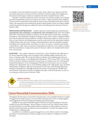 clocks. The researchers also measured the speed at which people in these six cultures walked; Another type of time is Interpersonal