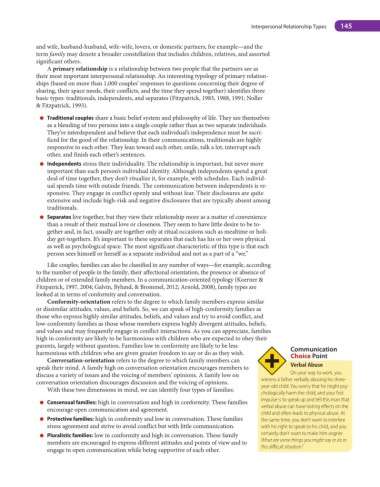 speak their mind. A family high on conversation orientation encourages members to verbal abuse