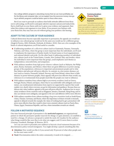 Cultural distinctions become especially important in persuasion; the appeals you would use