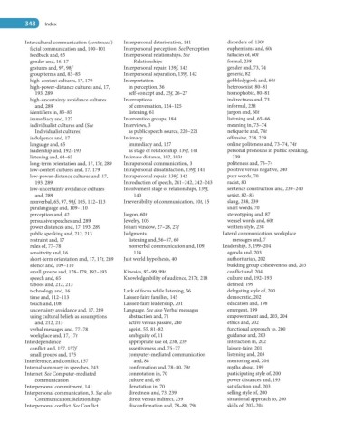 Intercultural communication (continued) Interpersonal deterioration, 141 disorders of, 130t