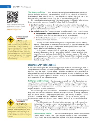 found to most often accompany lying (DePaulo, et al., 2003; Knapp, 2008):