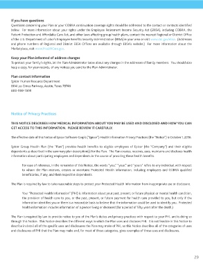 Questions concerning your Plan or your COBRA continuation coverage rights should be addressed to the contact or contacts identified