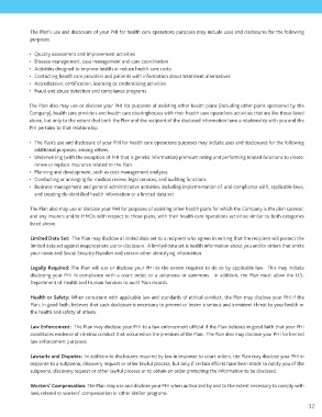 • The Plan’s use and disclosure of your PHI for health care operations purposes may include uses and disclosures for the following