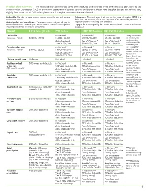Medical plan overview | The following chart summarizes some of the features and coverage levels of the medical plan. Refer to the