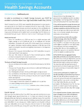 enrolled in a Anthem Blue Cross High Deductible Health Plan (HDHP). participating in and funding an HSA. A listing of