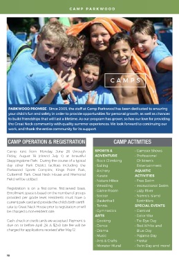 PARKWOOD PROMISE : Since 2005, the staff at Camp Parkwood has been dedicated to ensuring