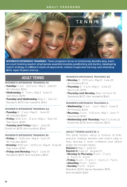 WOMEN’S INTENSIVE TRAINING: These programs focus on improving doubles play. Each