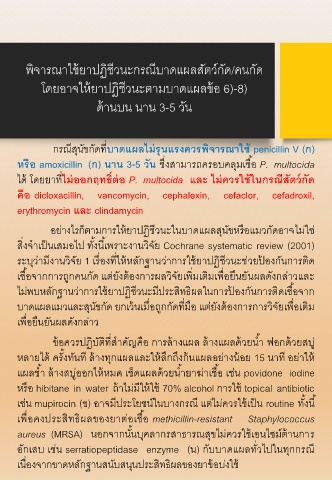 หรือ amoxicillin (ก) นาน 3-5 วัน ซึ่งสามารถครอบคลุมเชื้อ P. multocida