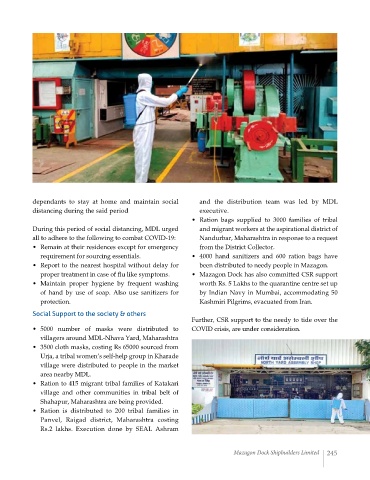 proper treatment in case of flu like symptoms. • Mazagon Dock has also committed CSR support