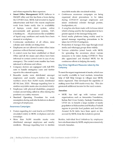 pandemic as a safety measure. • MOIL has tied up with various social