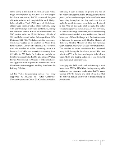 lockdown restrictions, RailTel continued the pace period, video conferencing of Railway officials were