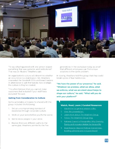 An organization’s culture will determine whether In closing, Weathers told the group that they could