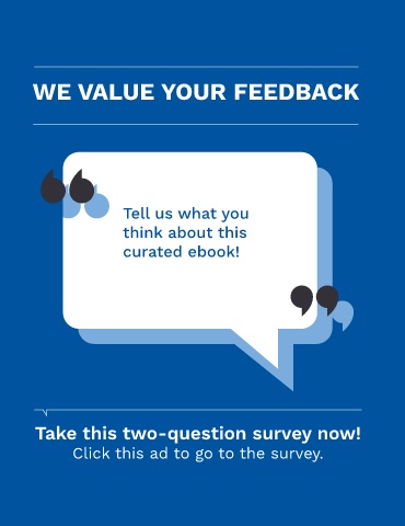 WE VALUE YOUR FEEDBACK Tell us what you think about this curated ebook! Take this two-question survey now! Click this ad to go to the survey. 13