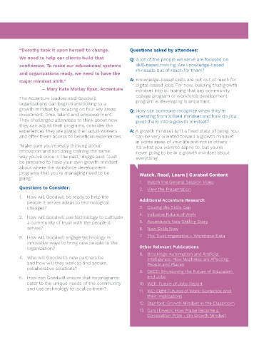 “Dorothy took it upon herself to change. Questions asked by attendees: