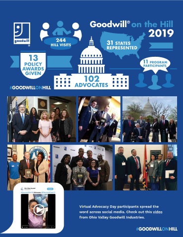 2019 244 HILL VISITS 31 STATES REPRESENTED 13 POLICY 11 PROGRAM PARTICIPANTS AWARDS GIVEN 102 ADVOCATES Virtual Advocacy Day participants spread the word across social media. Check out this video from Ohio Valley Goodwill Industries. 2