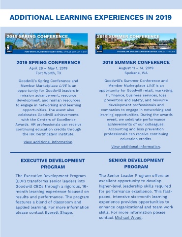 ADDITIONAL LEARNING EXPERIENCES IN 2019
