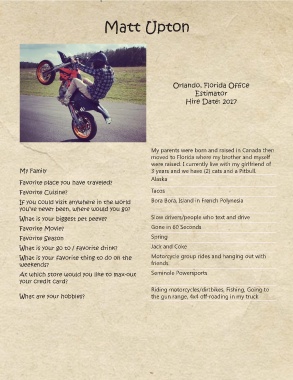 Riding motorcycles/dirtbikes, Fishing, Going to