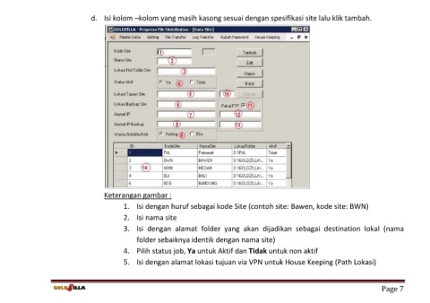 1. Isi dengan huruf sebagai kode Site (contoh site: Bawen, kode site: BWN)