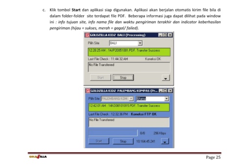 c.  Klik tombol Start dan aplikasi siap digunakan. Aplikasi akan berjalan otomatis kirim file bila di