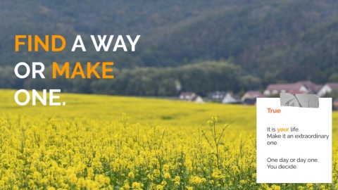 FIND A WAY OR MAKE ONE. True It is your life. Make it an extraordinary one. One day or day one. You decide.