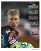 Andrew started his day off in the Georgia dome just like any other Saturday. Andrew was solid in practice and qualified 15th. When the racing started, he got an awesome jump off the line in 450 Heat 2. He rounded the first corner in top 5 position, as he was banging bars with the rest of the field going into the first rhythm section. The riders started funneling through the first timing sec- tion and Short collided mid air with Nicoletti off the first tabletop. When they landed, much to close to each other and sideways, Andrew was shot back into the air with- out his bike. Wil Hahn’s ma- chine came flipping on top of Short and he was pinned under the bike for far too long. He would be carried off the track to ride out of the stadium on the Asterisk Medical cart. His night was over. Hopefully Andrew is not seriously injured and he can finish out his season strong.