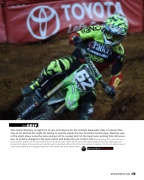 #62 Justin Starling- A night full of ups and downs for the Traders Kawasaki rider of Justin Star- ling as he started his night off failing to qualify inside the top 20 where he belongs. Starling was in the night show none the less and got off to a great start in his heat race, putting him into posi-