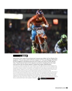 In his first ever supercross gate drop, Frye rocketed out of the gate and into a prime 4th place posi- tion. A good start can easily calm the nerves of young riders and Frye calm as can be settled in and looked like a veteran out there. He held his own throughout the heat and put in solid laps while mini- mizing mistakes. Despite his smooth riding, he would lose one spot and finish 5th but it was a very impressive ride for the young gun and he looked ready to keep it up in the main event.