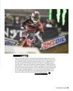 After a few years off of racing the professional supercross circuit Jeff Alessi was able to make his third main event of the season. Af- ter failing to qualify from the heat and semi races, J.Alessi was on his way to the LCQ. With a start just out side of a qualifying posi- tion the #801 rider had to make something happen. Getting around Kyle White put Jeff in the final transfer position and was able to get around second and third place riders Cade Clason and Tony Archer as they got tangled together in a corner in the final stages of the race. Jeff came around 21st in the opening lap of the main event and that is where he finished when the checkers flew.