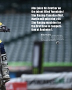 Alex joins his brother on the talent filled Yamalube/ Star Racing Yamaha effort. Martin will pilot the #26 Star Racing machine for the first time in competi- tion at Anaheim 1.