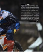 on more than one occasion. Being the point’s leader, one would assume Ryan would focus on getting through the night with out any disastrous events. The best way to avoid all bad situations is to start out front, and that’s exactly what Dungey did. Perfectly executing the difficult start, Ryan would enter the first turn in second place and take the lead within the first 5 laps. A hungry Chad Reed and Eli Tomac tried everything they could to hunt down the #1 machine and keep the damage to a minimum. Even jumping new rhythms we haven’t seen all day, this was still not enough to stop the champ. Dungey would go on to win his 2nd 450 Main Event of the season and extend his podium streak to 19 in a row. Now holding a 13-point lead over second place rider Chad Reed, Ryan Dungey puts himself in a com- fortable position moving forward through the rest of the series.