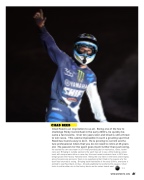 He started his own race team in 2011 that provided jobs for mechanics, riders, techni- cians ext. Bringing in outside sponsors the sport has yet to see, while making a state- ment with unique team attire on race day. His most recent endeavor here in 2016 was bringing back the Factory Yamaha team. Being the only rider on the team and bringing along his personal sponsors, there is no questioning that Chad is the reason why the team has returned to racing. Bringing back flashbacks of the early 2000’s, everyone is excited to see Reed back on blue. Already grabbing two podiums this season, Chad looks to add another win to the history books as the series heads east.