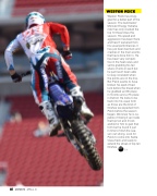Weston Peick has strug- gled for a better part of the season. The Autotrader/ Monster Energy Yamaha rider has only cracked the top 10 three times this season. His speed and aggression has been there and hasn’t waivered from his usual performances it has just been bad luck and crashes in the main events that have done him in. He has been very competi- tive in the heat races and semis grabbing his fair share of wins in each but he just hasn’t been able