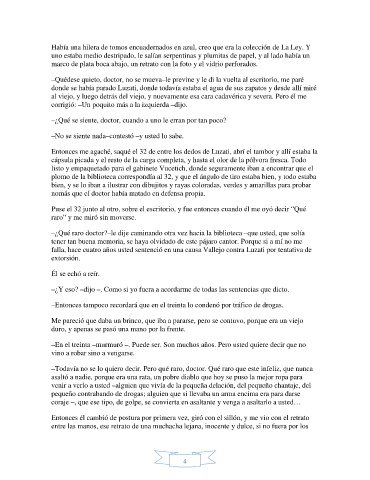 –¿Qué raro doctor?–le dije caminando otra vez hacia la biblioteca –que usted, que solía