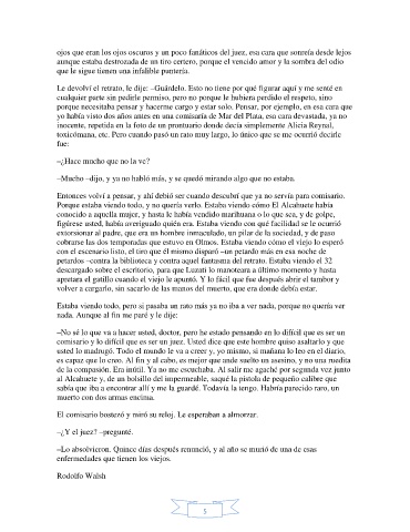 ojos que eran los ojos oscuros y un poco fanáticos del juez, esa cara que sonreía desde lejos