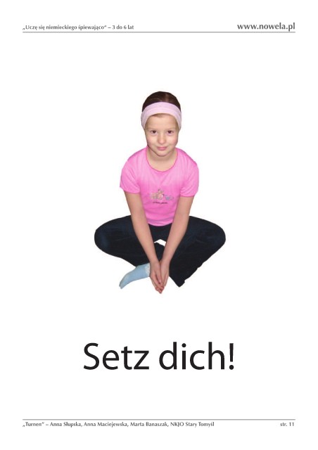 „Uczę się niemieckiego śpiewająco“ – 3 do 6 lat www.nowela.pl Setz dich! „Turnen” – Anna Słupska, Anna Maciejewska, Marta Banaszak, NKJO Stary Tomyśl str.
