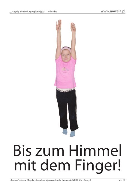 „Uczę się niemieckiego śpiewająco“ – 3 do 6 lat www.nowela.pl Bis zum Himmel mit dem Finger! „Turnen” – Anna Słupska, Anna Maciejewska, Marta Banaszak, NKJO Stary Tomyśl str. 3