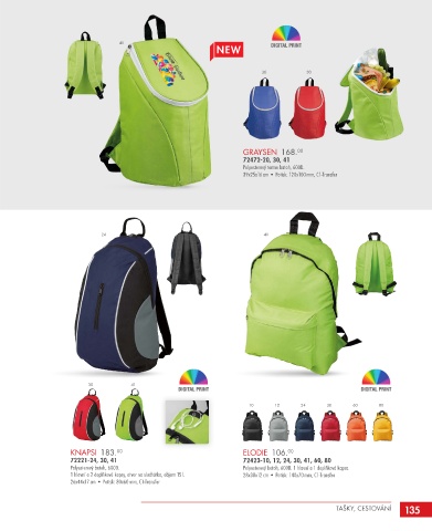 1 hlavní a 2 doplňkové kapsy, otvor na sluchátka, objem 15 l. 28x38x12 cm • Potisk: 140x70 mm, C1-Transfer