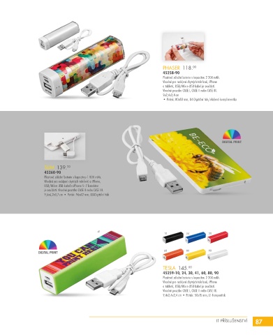 Plastová záložní baterie s kapacitou 2 200 mAh.
