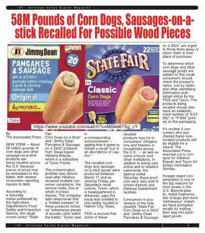 NEW YORK -- About 58 million pounds of corn dogs and other sausage-on-a-stick products are