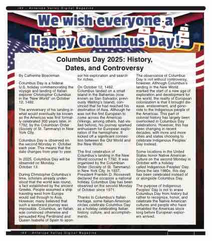 The observance of Columbus Day is not without controversy, however. Although Columbus’s landing in the New World marked the start of a new age of exploration and development for the world, the reality of European colonization is that it brought dis- ease, enslavement, and geno- cide to the indigenous people of the Americas. This part of colonial history has largely been overlooked in Columbus Day celebrations. However, this has been changing in recent decades, with more and more cities and states choosing to celebrate Indigenous Peoples’ Day instead.