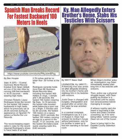 Christian Roberto López Rodríguez broke the record for the fastest 100 meters backwards in high heels, which he previously set at 20.05 seconds during an appearance on Spanish TV series La Noche De Los Récords.