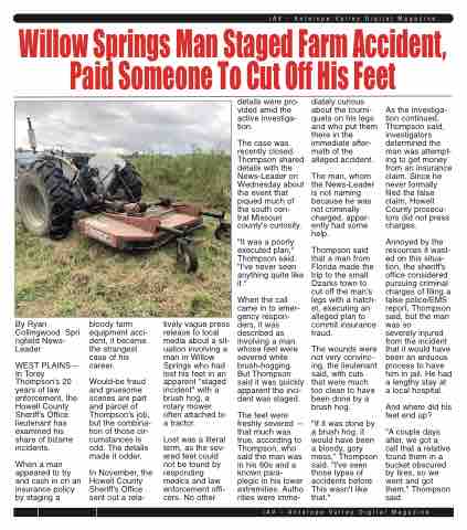 Willow Springs Man Staged Farm Accident, Paid Someone To Cut Off His Feet