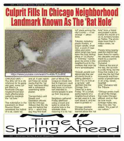 CHICAGO (AP) — You dirty rat! In a city infamous for its gang- ster past, some cul- prit filled in a Northside Chicago neighborhood land- mark affectionately called by residents the “rat hole.”