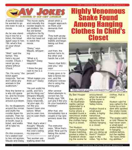 - An Australian reptile catcher responded to a Queensland home where a resident found a venomous snake slithering across the clothes hang- ing in a closet.
