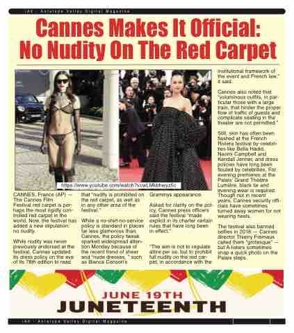 Festival red carpet is per- haps the most rigidly con- trolled red carpet in the world. Now, the festival has added a new stipulation: no nudity.