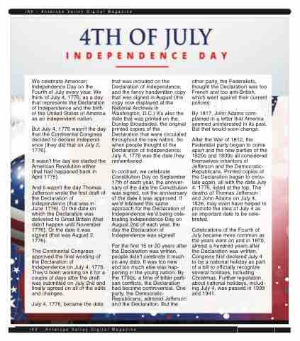But July 4, 1776 wasn't the day that the Continental Congress decided to declare independ- ence (they did that on July 2, 1776).