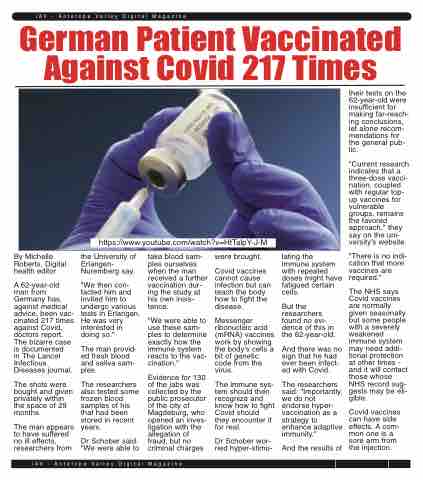A 62-year-old man from Germany has, against medical advice, been vac- cinated 217 times against Covid, doctors report. The bizarre case is documented