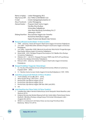 6. Februari 2016 - sekarang : Sekretaris Program Studi Sastra Inggris Universitas