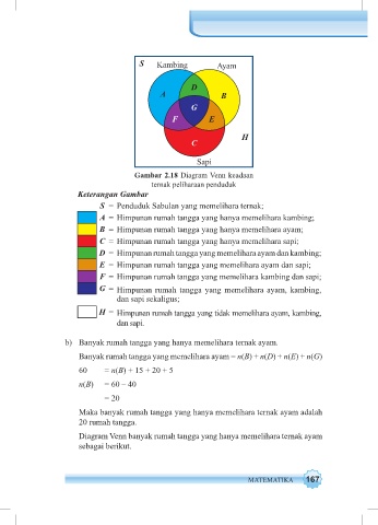 Diagram Venn banyak rumah tangga yang hanya memelihara ternak ayam