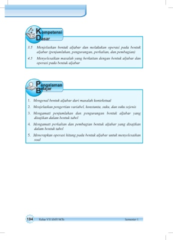 3.5 Menjelaskan bentuk aljabar dan melakukan operasi pada bentuk